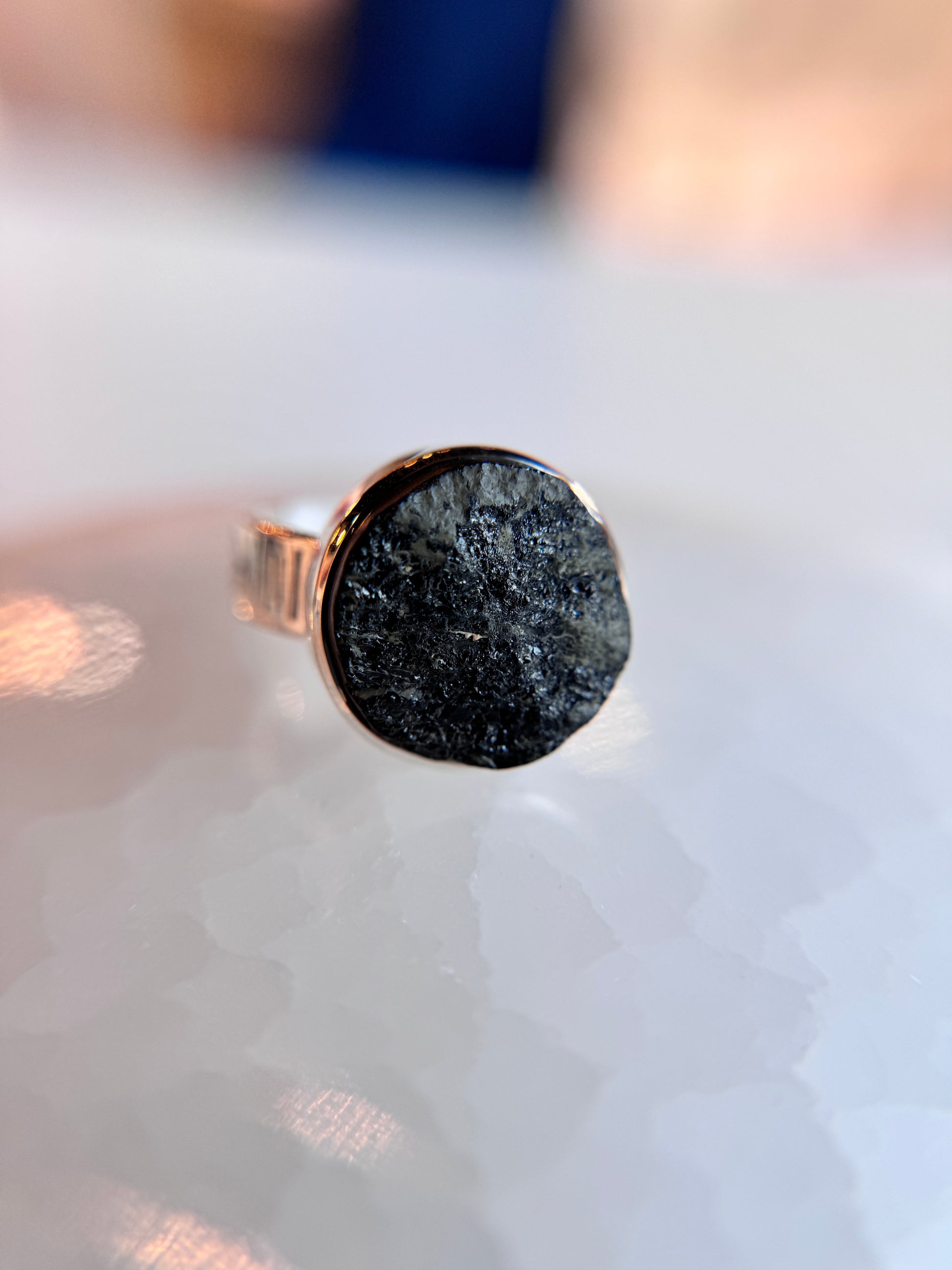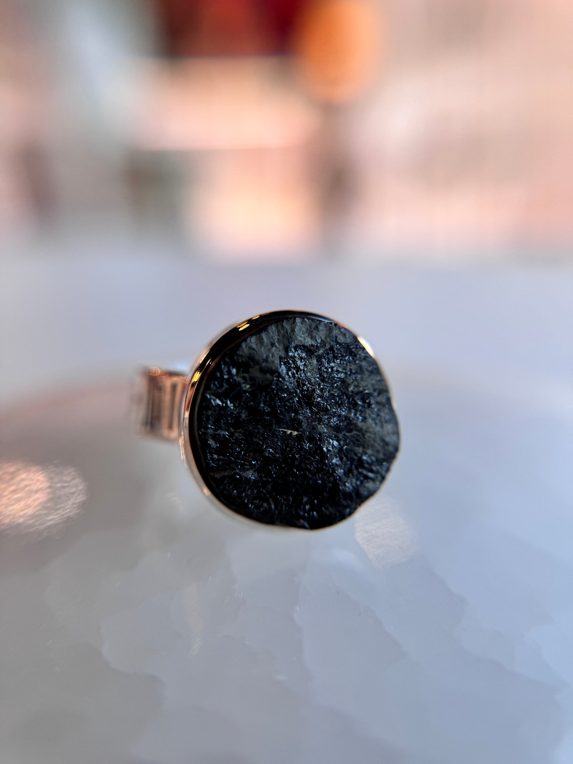 Black Tourmaline Ring | size 8 Sterling silver .925