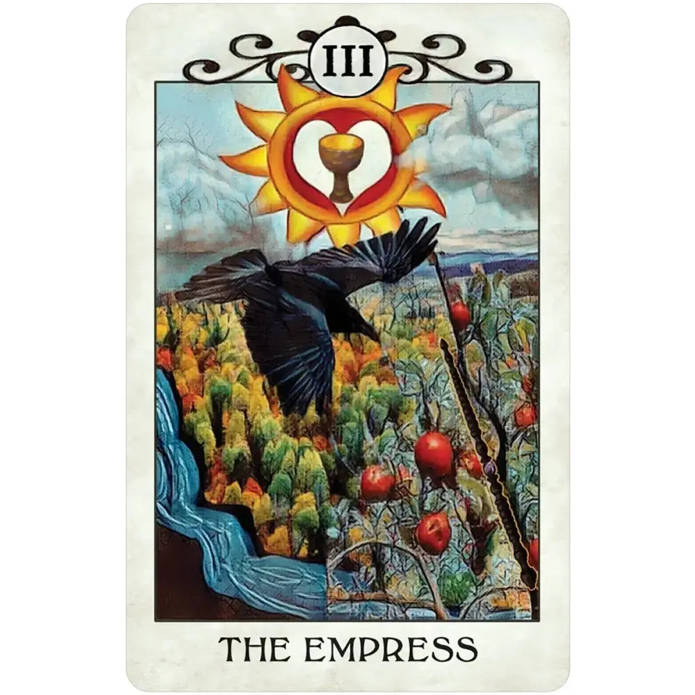 Paying homage to the mystical energy of crows and ravens, Crow Tarot invites us to fly through the veil and connect with our intuitive powers. This pocket-sized 78-card deck is infused with the familiar symbolism of the traditional Rider-Waite® Tarot, making it ideal for both beginners and professional readers. The 128-page guidebook presents upright and reversed meanings and includes a custom Crow Tarot spread. Includes 78 cards and a 128-page illustrated guidebook. The box measures 2.625”x 3.875”; 78 cards measure 2.25” x 3.5”.