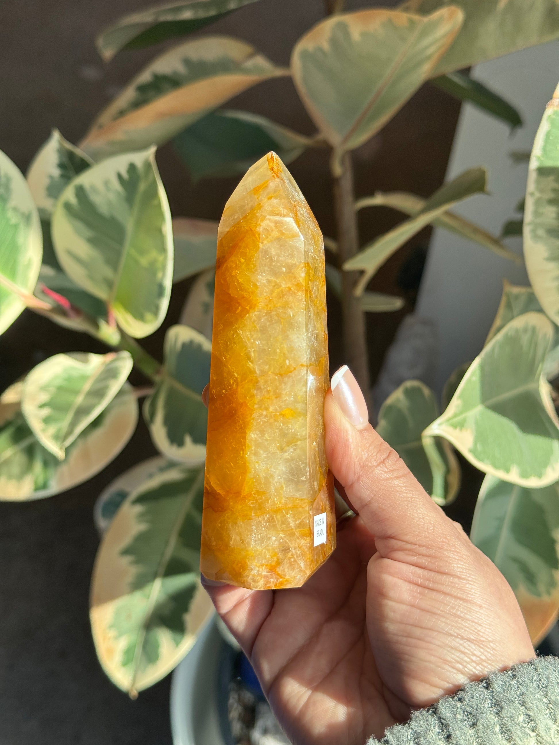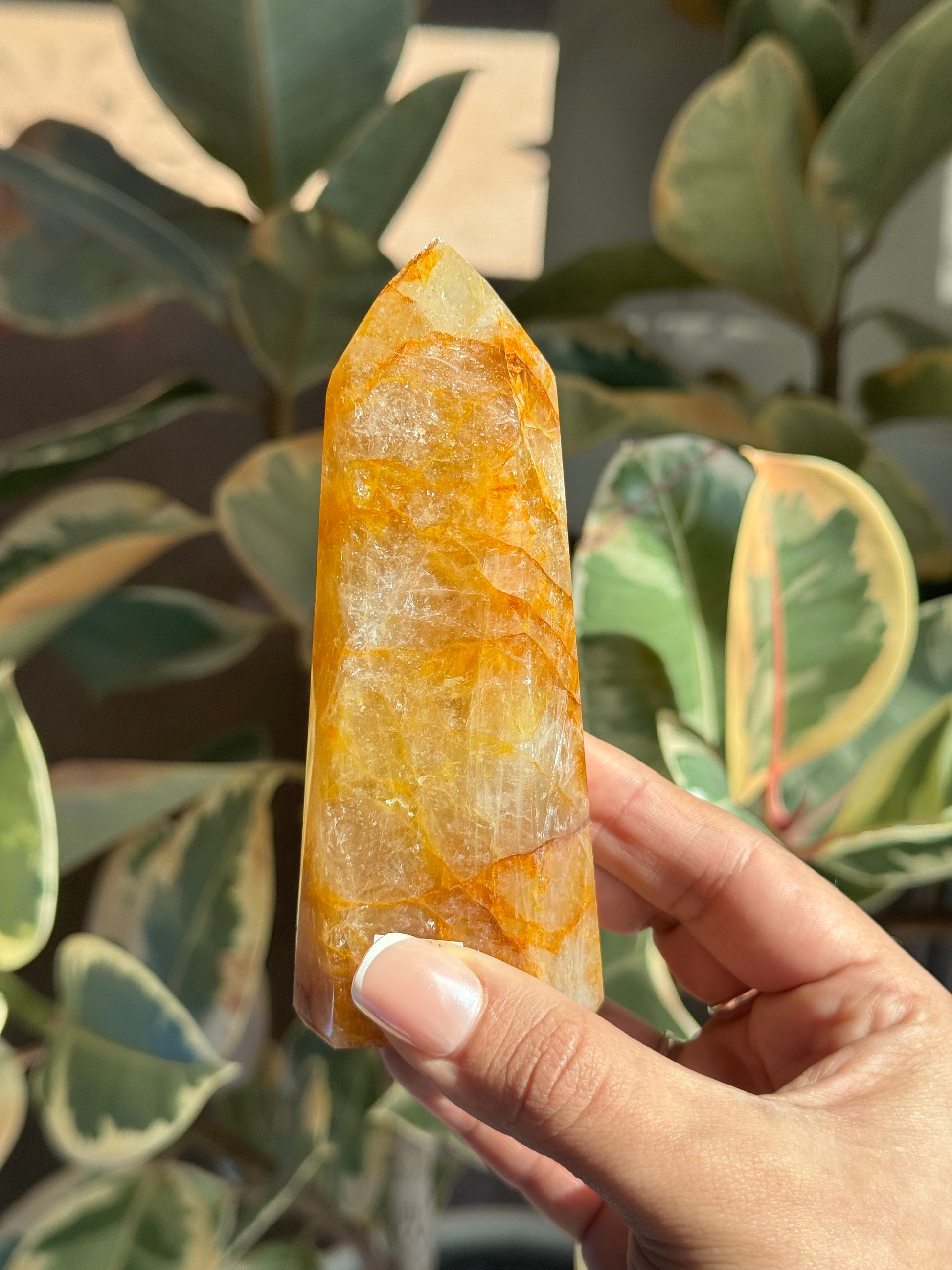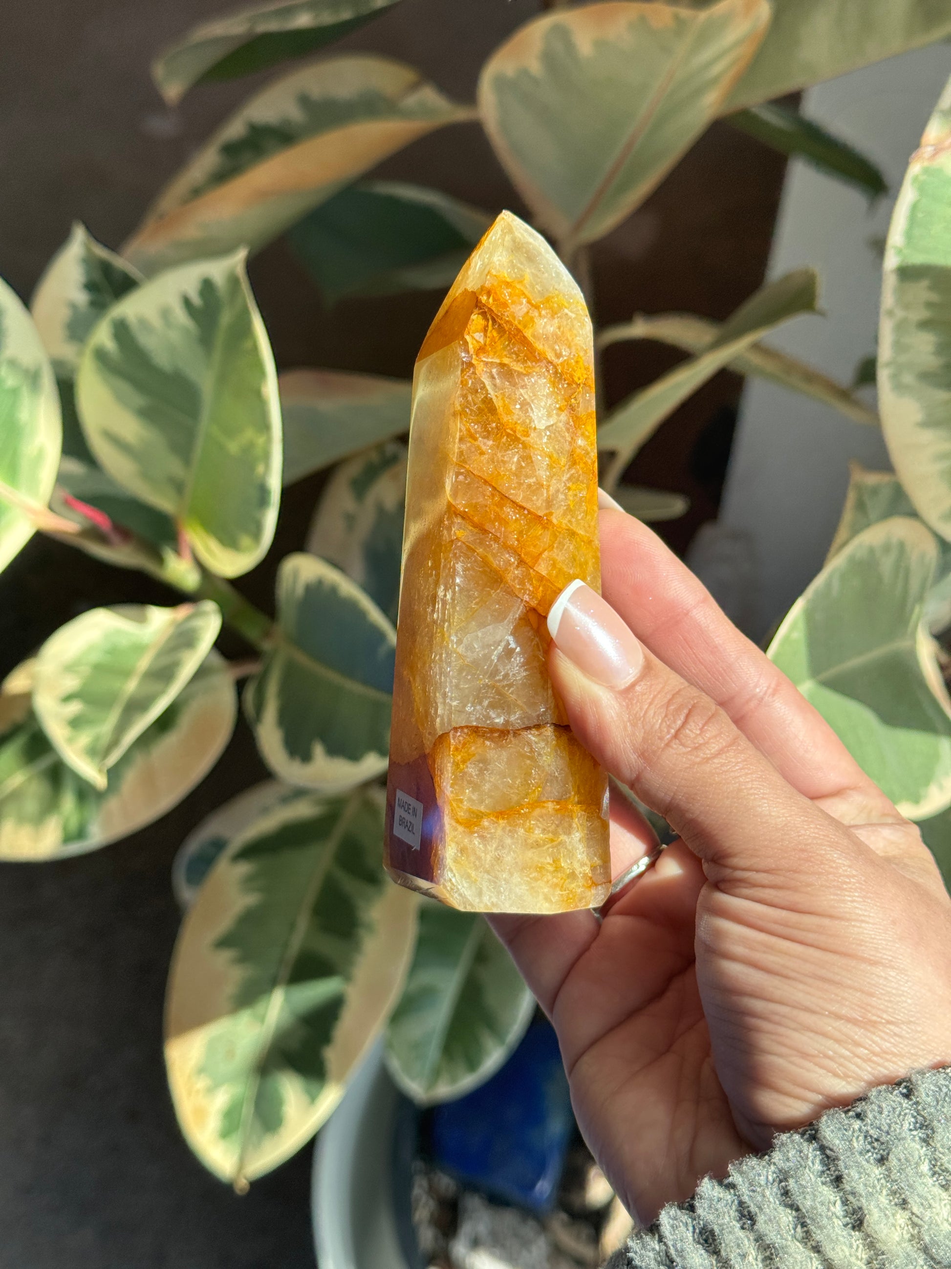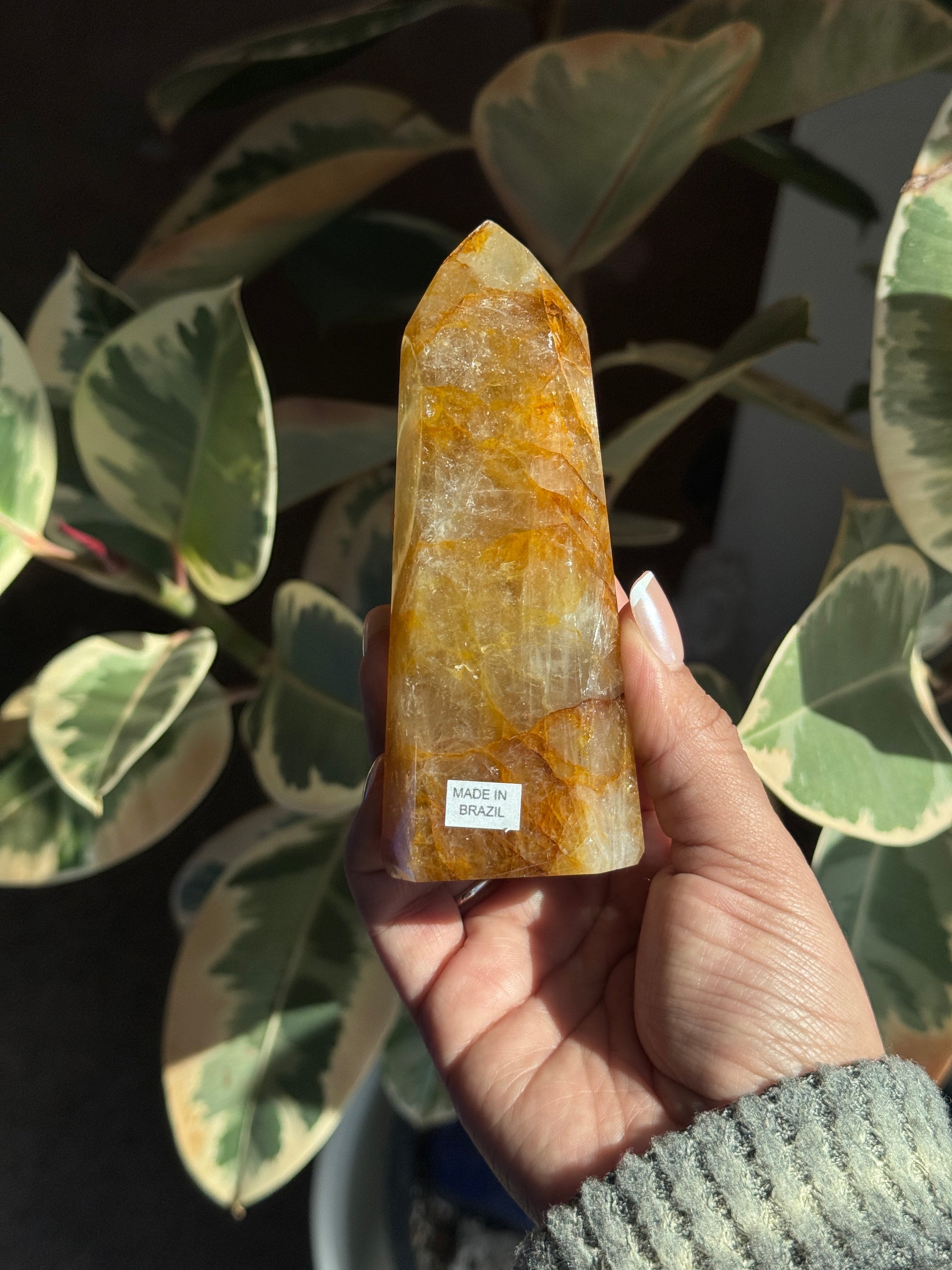 Golden Healer Quartz is a powerful, multi-purpose crystal known for its healing and amplifying properties. It combines the clarity of Clear Quartz with the manifestation abilities of Hematite. This high-vibration crystal can be programmed with intentions, promoting healing from past wounds and enhancing peace and clarity through meditation