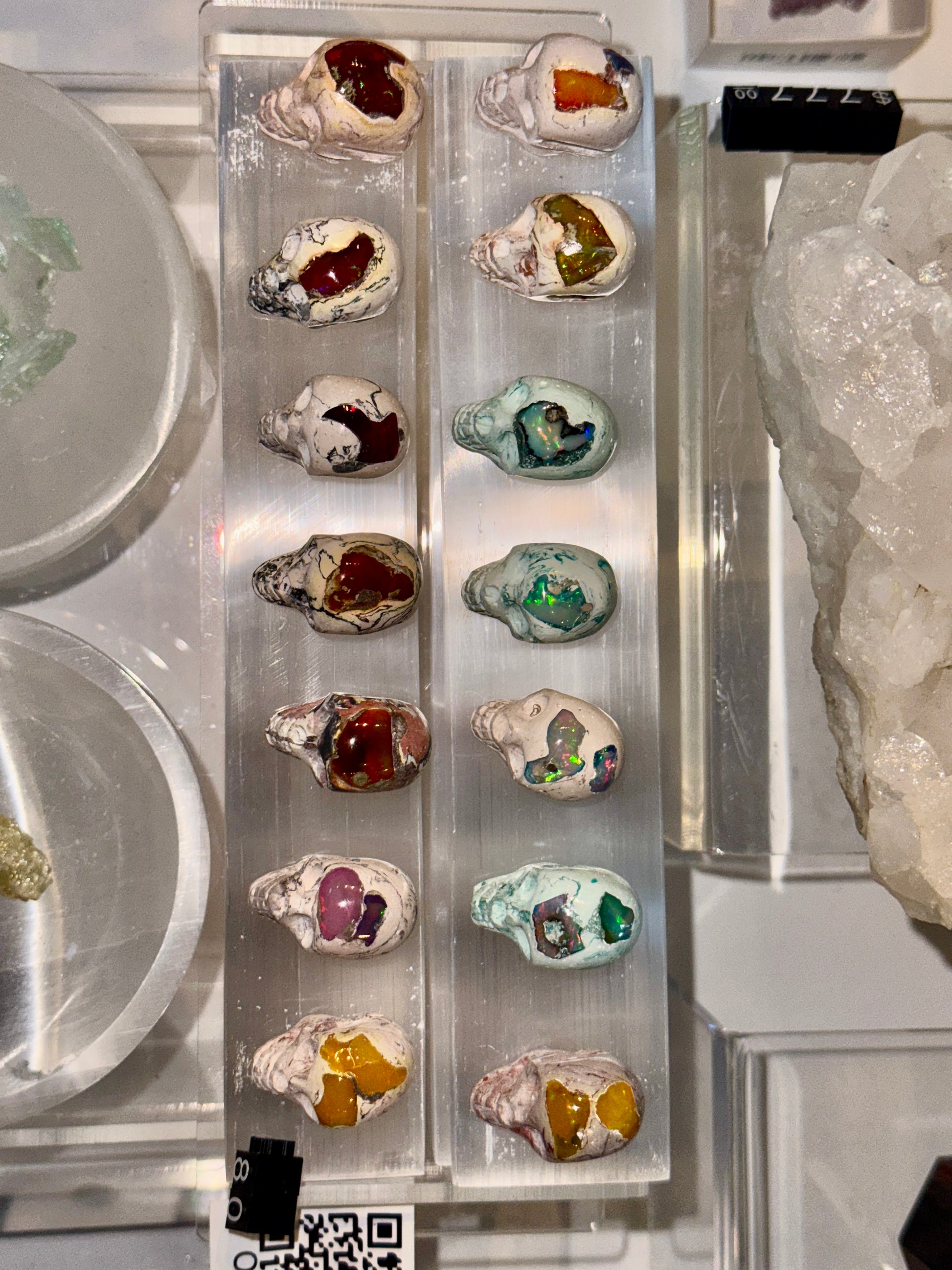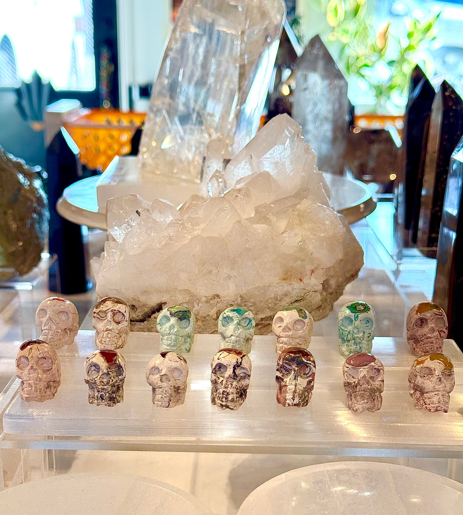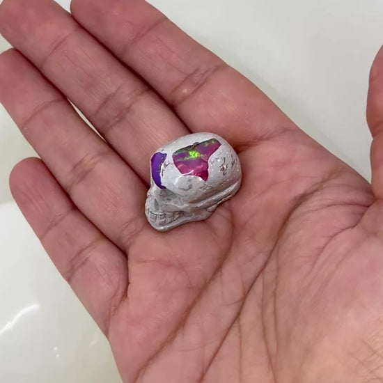 Spiritually, Opal is a stone of illumination, creativity, and emotional truth, and when carved into a skull, that energy becomes more symbolic and introspective. Crystal skulls are often seen as vessels of wisdom and remembrance inviting deeper self reflection and connection to inner knowledge. These Opal skulls amplify intuition, spark inspiration, and help bring hidden emotions to light so they can be transformed into clarity and creative expression. Working with one feels powerful yet intimate like holding a living spark of Earth’s fire shaped by human hands.