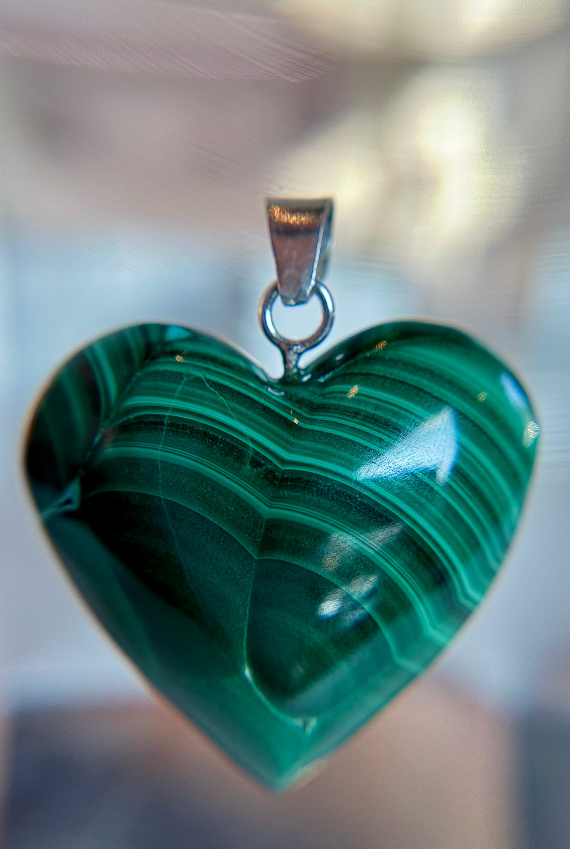 Large Malachite Hearts from Mexico with Sterling Silver Hardware