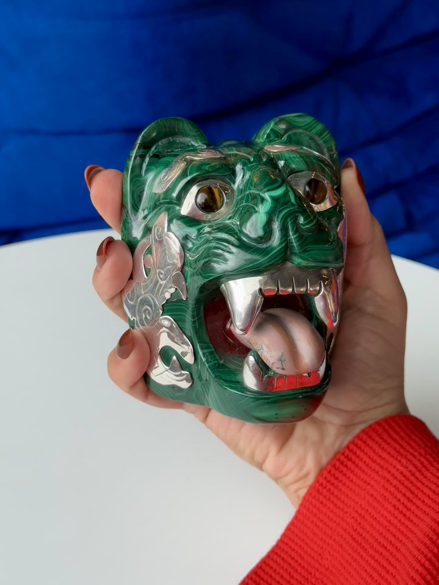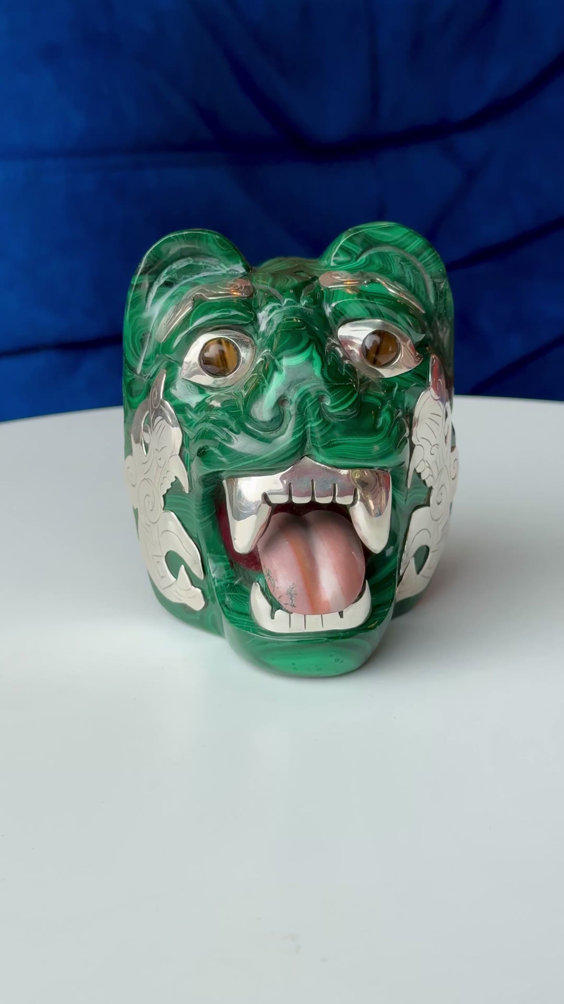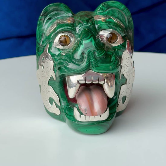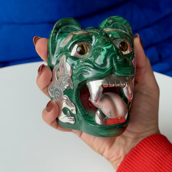 Malachite Sculpture with Tigers Eye and 95% Silver Accents