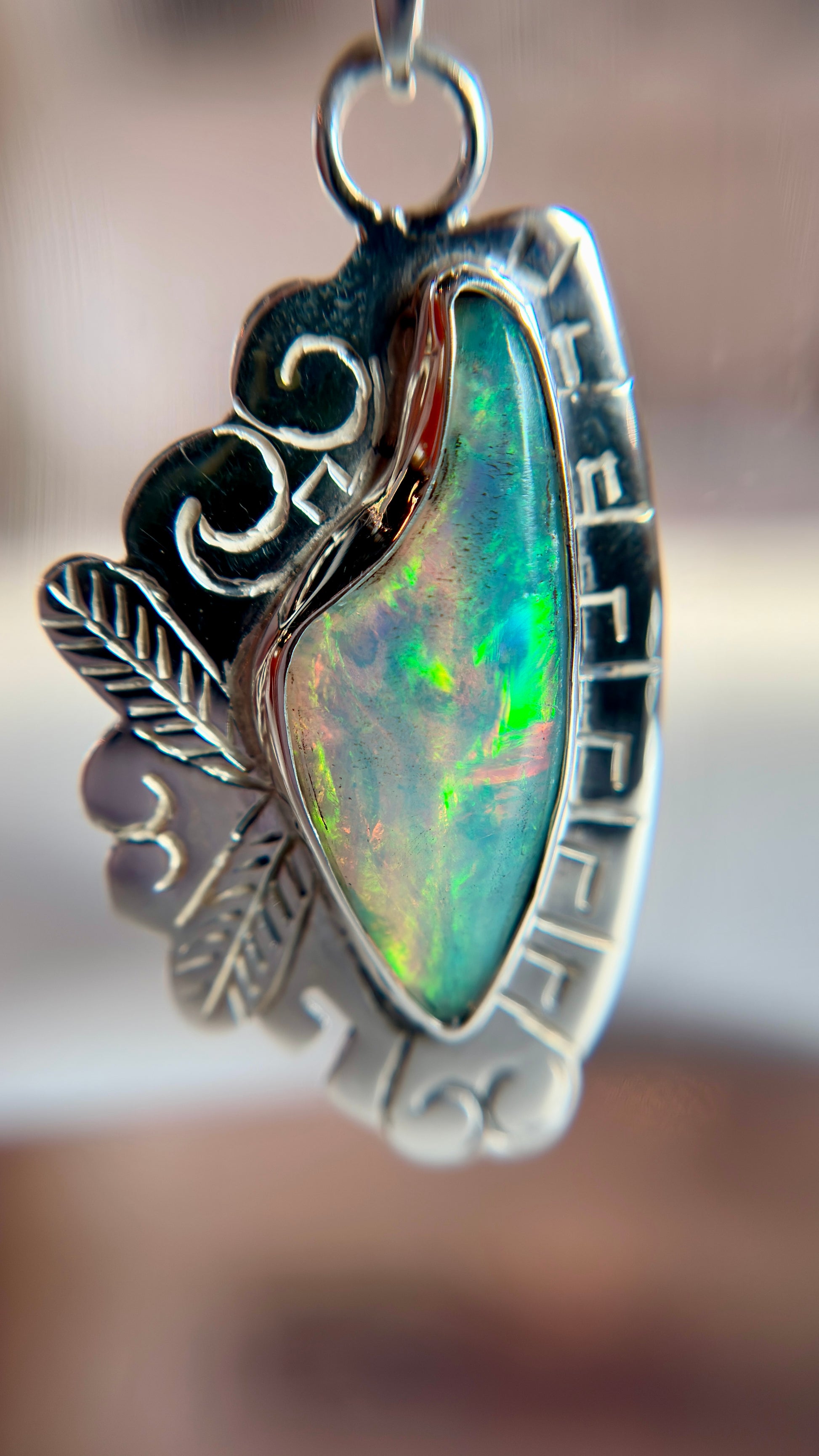 Mexican Opal Necklace Pendant - Sterling Silver .925