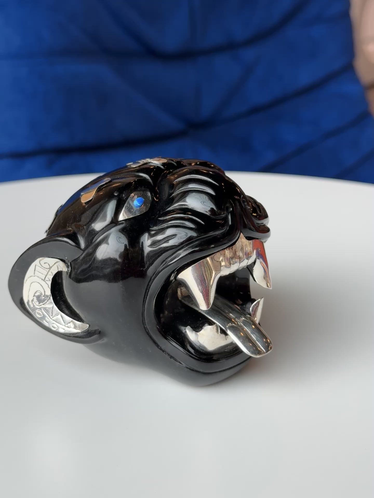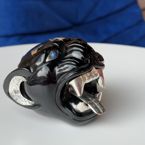 Obsidian Jaguar Sculpture | 95% Silver and Opal