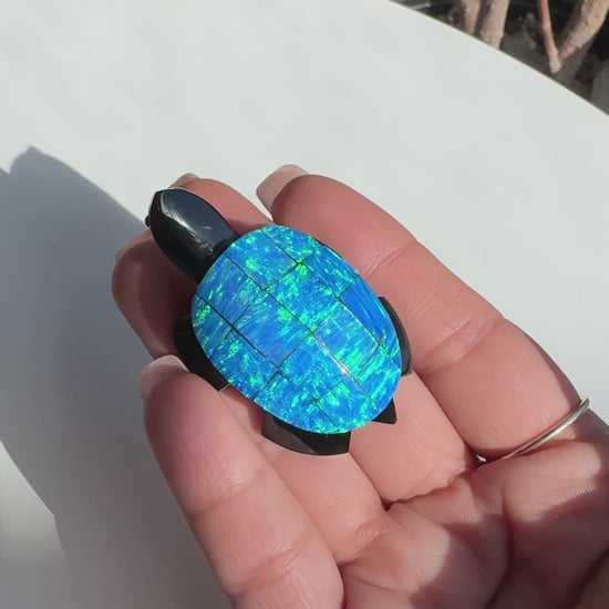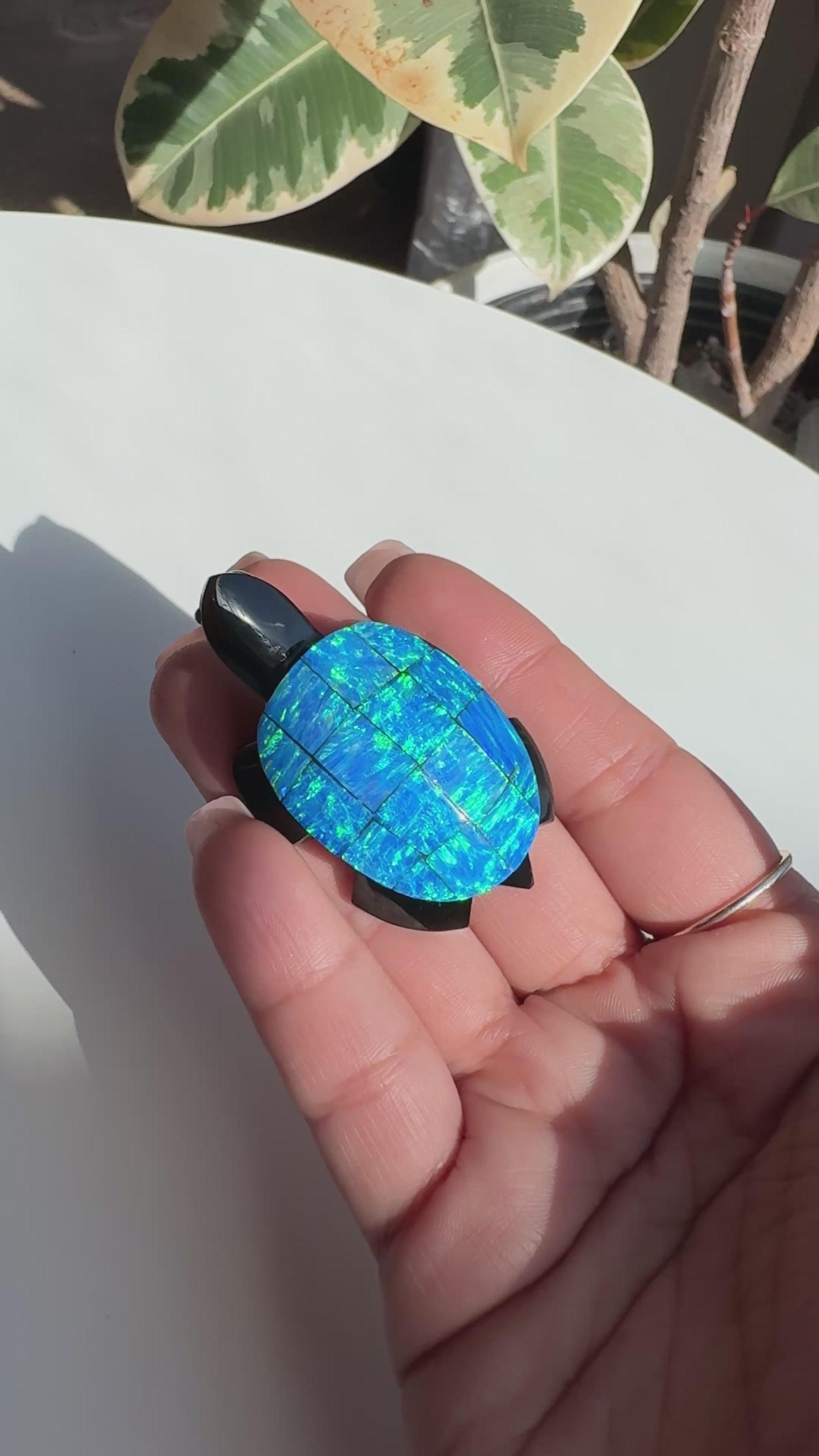Obsidian Turtle with Blue Opal Shell and Fire Opal Eyes