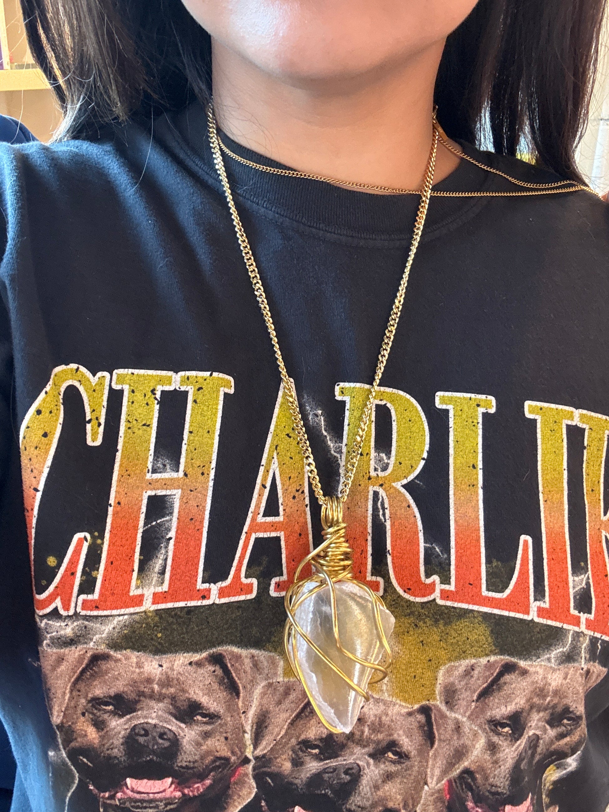 TV Selenite Gold plated Copper Wire Wrapped necklace