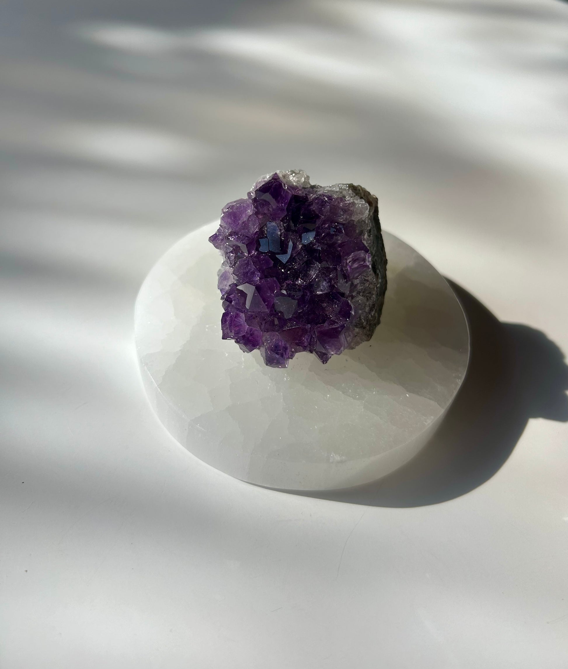 Amethyst is revered for its calming, neuro regulating properties. Often linked to the crown and third eye chakras, it’s believed to support mental clarity, sleep quality, and stress reduction. In energetic traditions, amethyst helps cool excess stimulation and quiet an overactive mind. A grounding stone for intuition, balance, and inner stillness.
