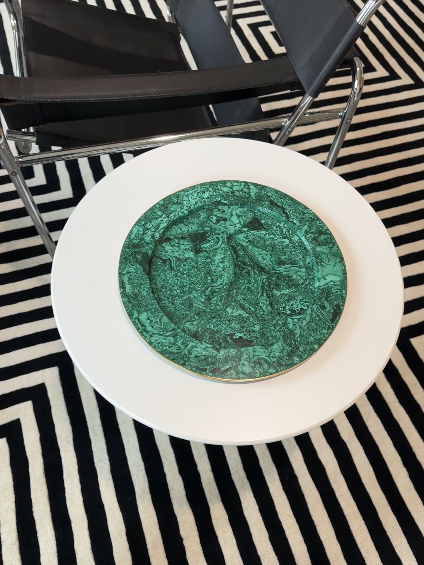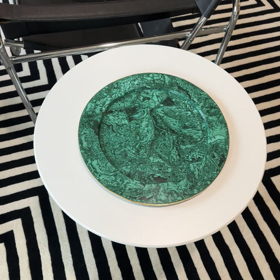 Elevate your serving experience with our Large Malachite Serving Tray. Handcrafted in Mexico, each tray is one-of-a-kind with a gold painted copper trim. This heart-opening stone offers transformation and protection from 5G and EMF, while adding a touch of sweetness and tenderness to your space.
