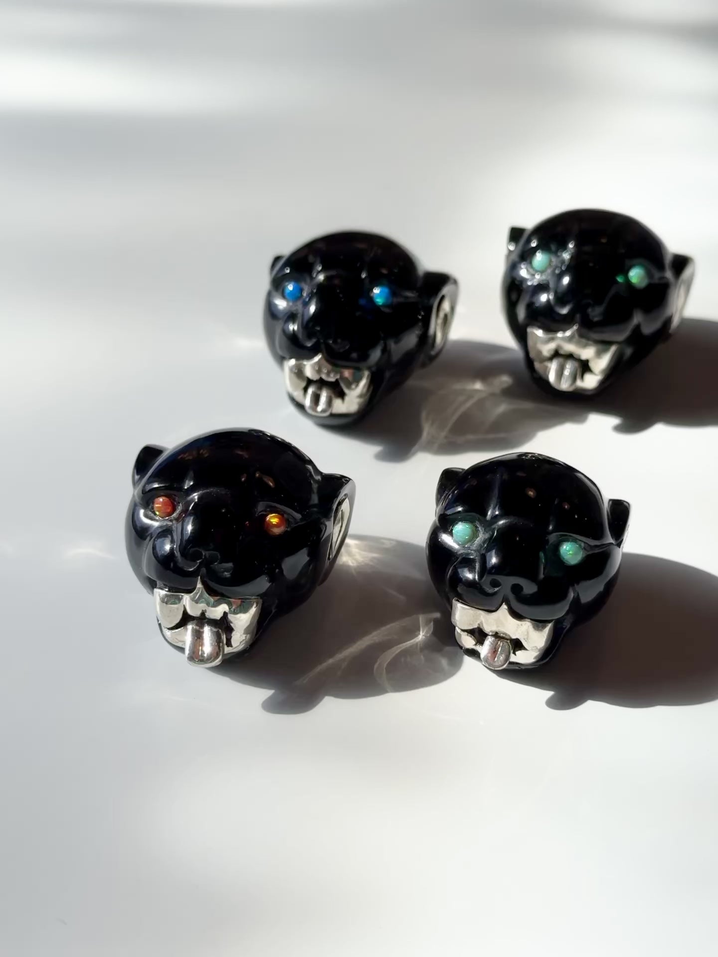 Obsidian Jaguar Sculpture with Opal and 95% Silver